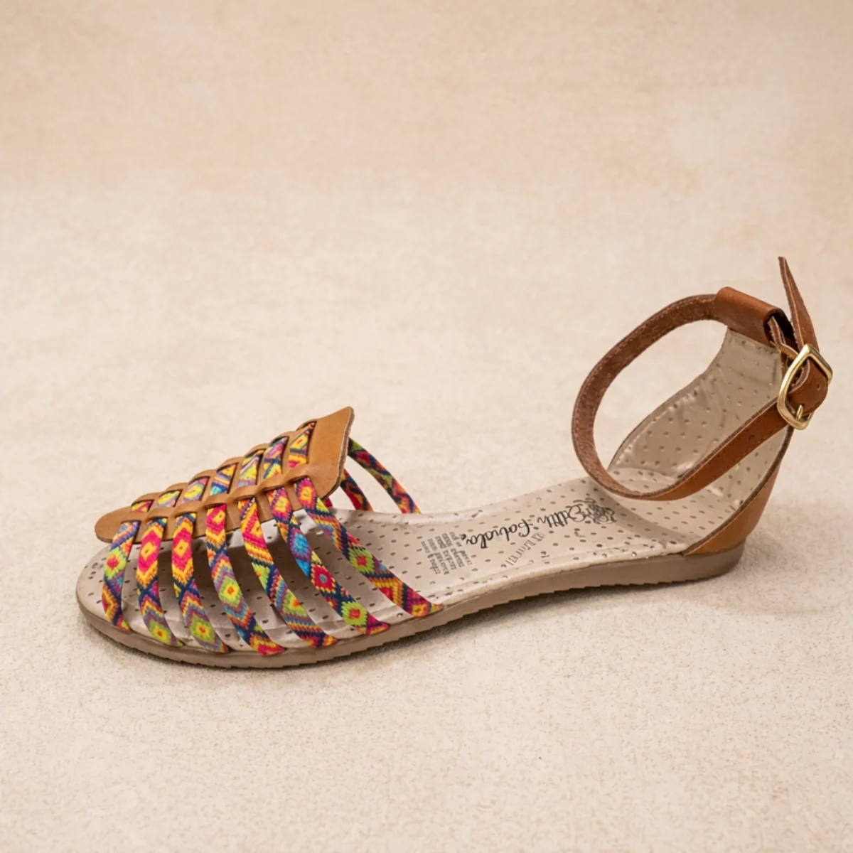 El modelo Edith Fabiola 07 es la definición de calzado fresco y tradicional. Este huarache destaca por su diseño de múltiples tiras sintéticas entrelazadas que sujetan el pie con suavidad, permitiendo una ventilación total durante los días de calor. Su estructura de piso y suela ligera lo convierten en el calzado ideal para caminar largas distancias en vacaciones o para el uso diario en casa. Al contar con un estilo de inspiración artesanal, cada par presenta detalles únicos en el acomodo de sus tiras, ofreciendo un look natural y relajado que combina perfecto con vestidos, faldas o jeans.