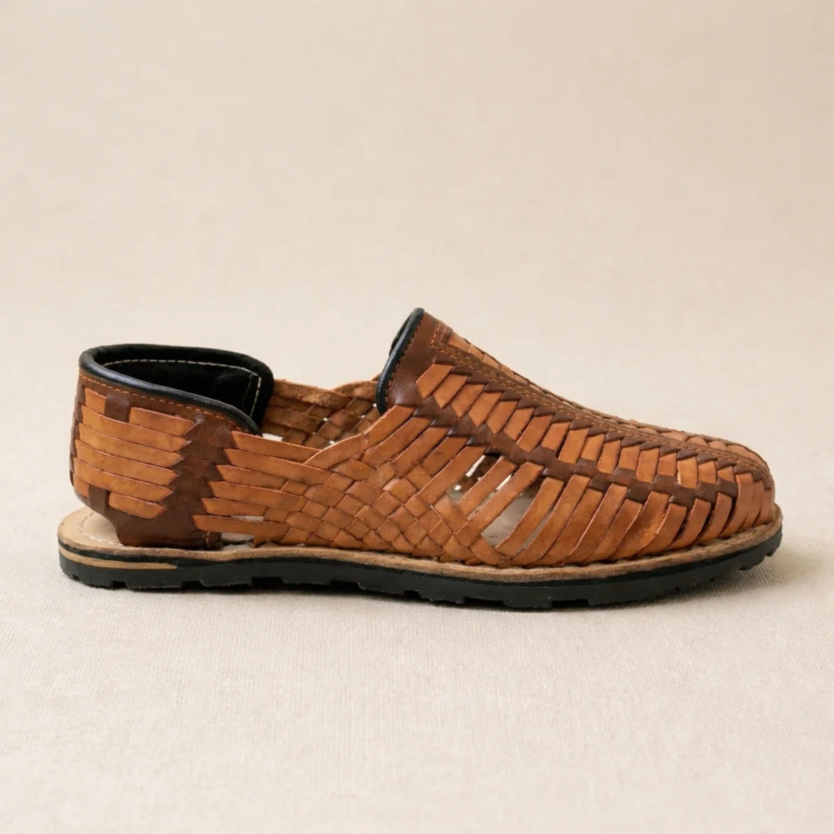 Huarache tradicional para caballero con diseño de tejido artesanal. Un calzado sintético ligero, fresco y de gran comodidad, ideal para quienes buscan un estilo clásico mexicano que se adapta perfectamente al pie gracias a su estructura flexible.
