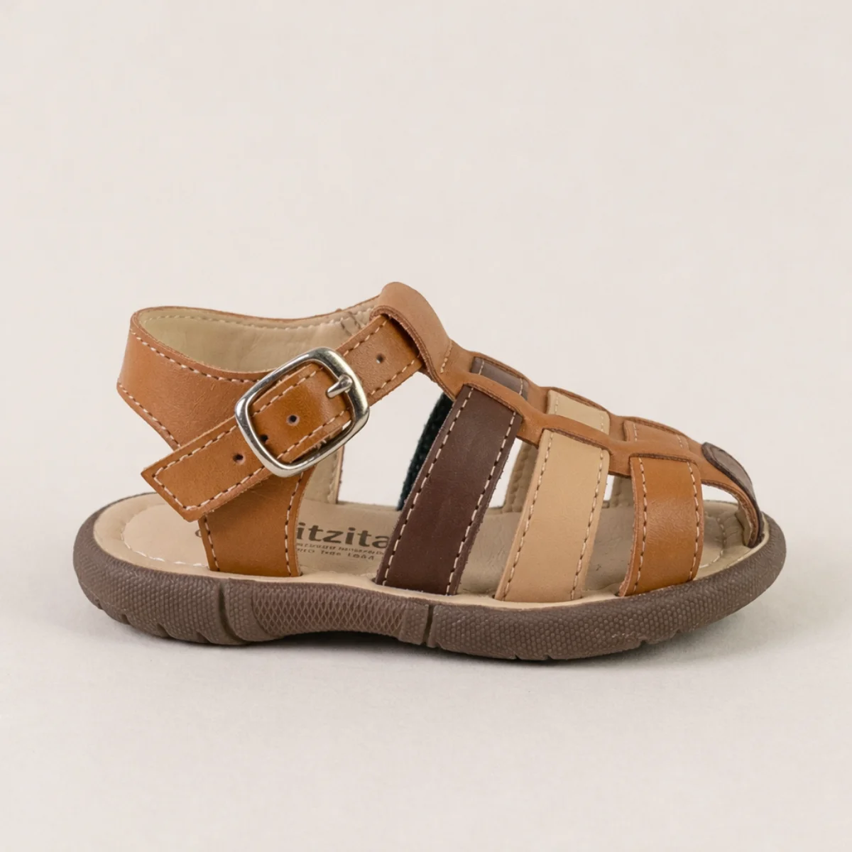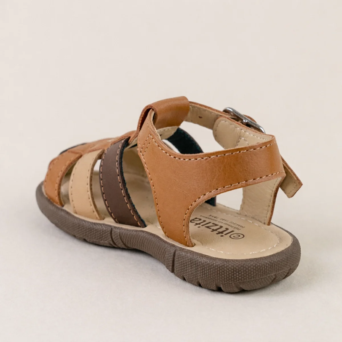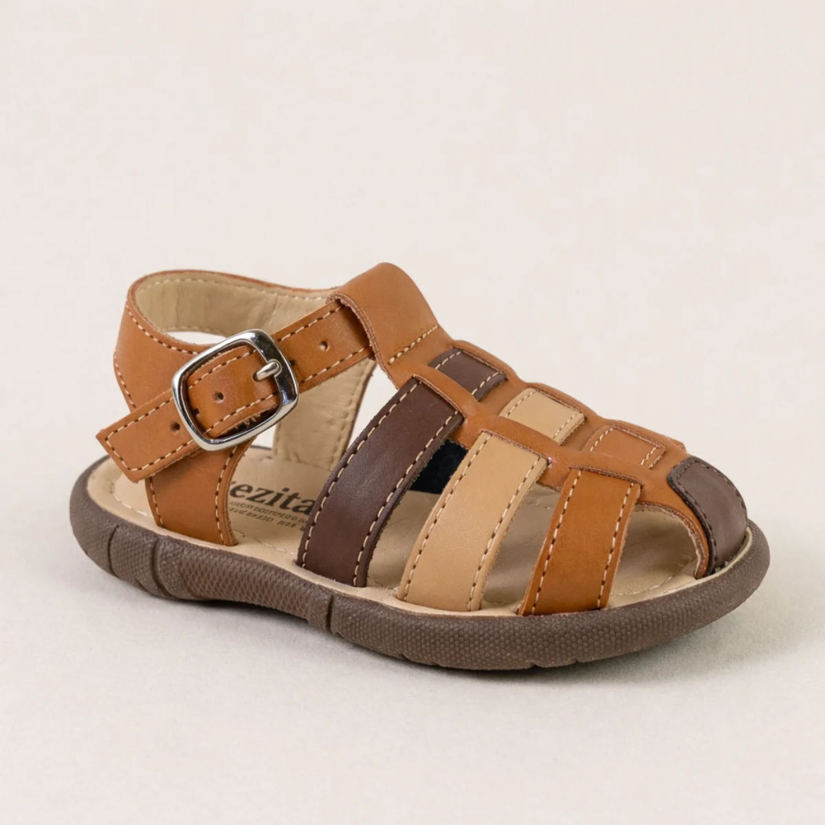 El huarache Mapi es el calzado tradicional favorito para los niños durante la temporada de calor. Diseñado bajo el estilo “pescador”, cuenta con tiras de material sintético entrelazadas y una punta cerrada que brinda mayor protección a los dedos durante el juego. Su ajuste de hebilla metálica asegura que el zapato permanezca firme en el pie, mientras que su suela ligera y plana permite un movimiento natural y cómodo. Es un calzado resistente, fácil de limpiar y muy fresco, ideal para fiestas familiares, salidas casuales o para el uso diario en climas templados.