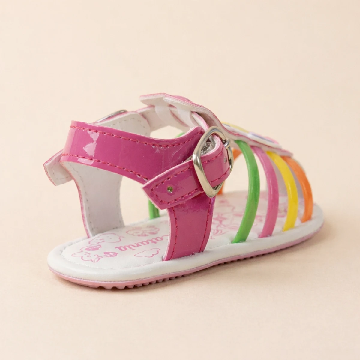 La colección de huarachitos Mapi está diseñada para brindar frescura y un estilo encantador a las más pequeñas. Fabricados en material sintético liviano y resistente, estos sandalias destacan por su adorno de flor en la parte frontal, dándole un toque femenino y tierno. Cuentan con una suela plana delgada y muy ligera, ideal para no estorbar el movimiento natural del pie del bebé, y un ajuste de hebilla al tobillo que garantiza que el calzado se mantenga en su lugar. Disponibles en rosa pastel, rojo vibrante, azul cielo y blanco clásico, son perfectos para ceremonias, fiestas familiares o paseos en días calurosos.