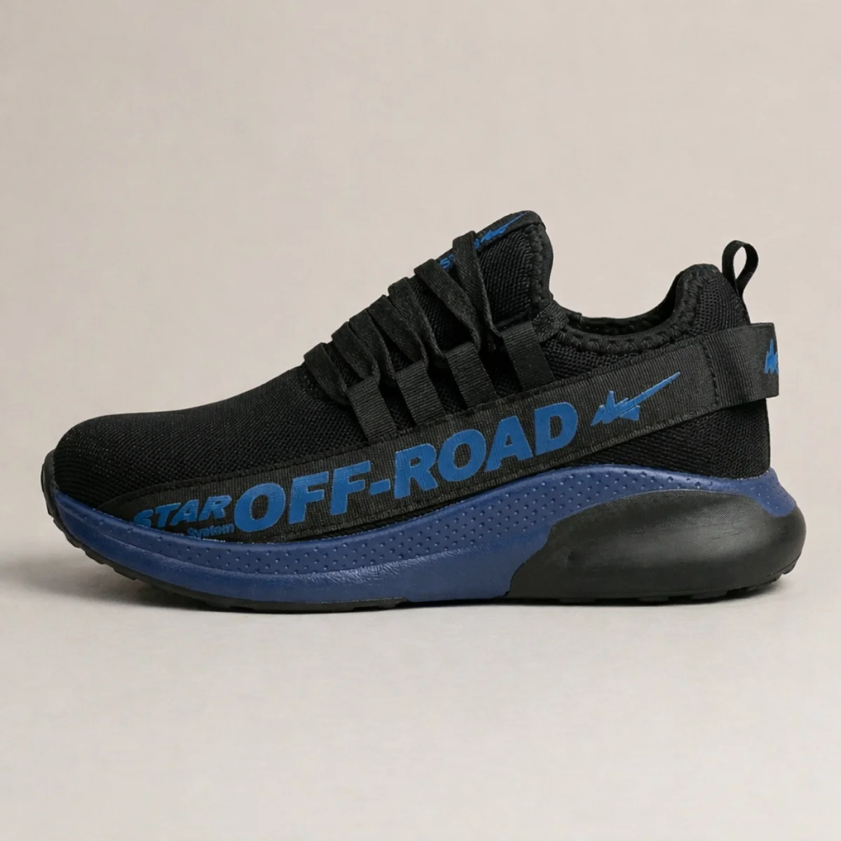 Tenis deportivo para caballero en color negro. Fabricado con materiales sintéticos ligeros y suela de tracción, es la opción práctica y resistente para el ejercicio diario o actividades que requieren máximo movimiento y comodidad.
