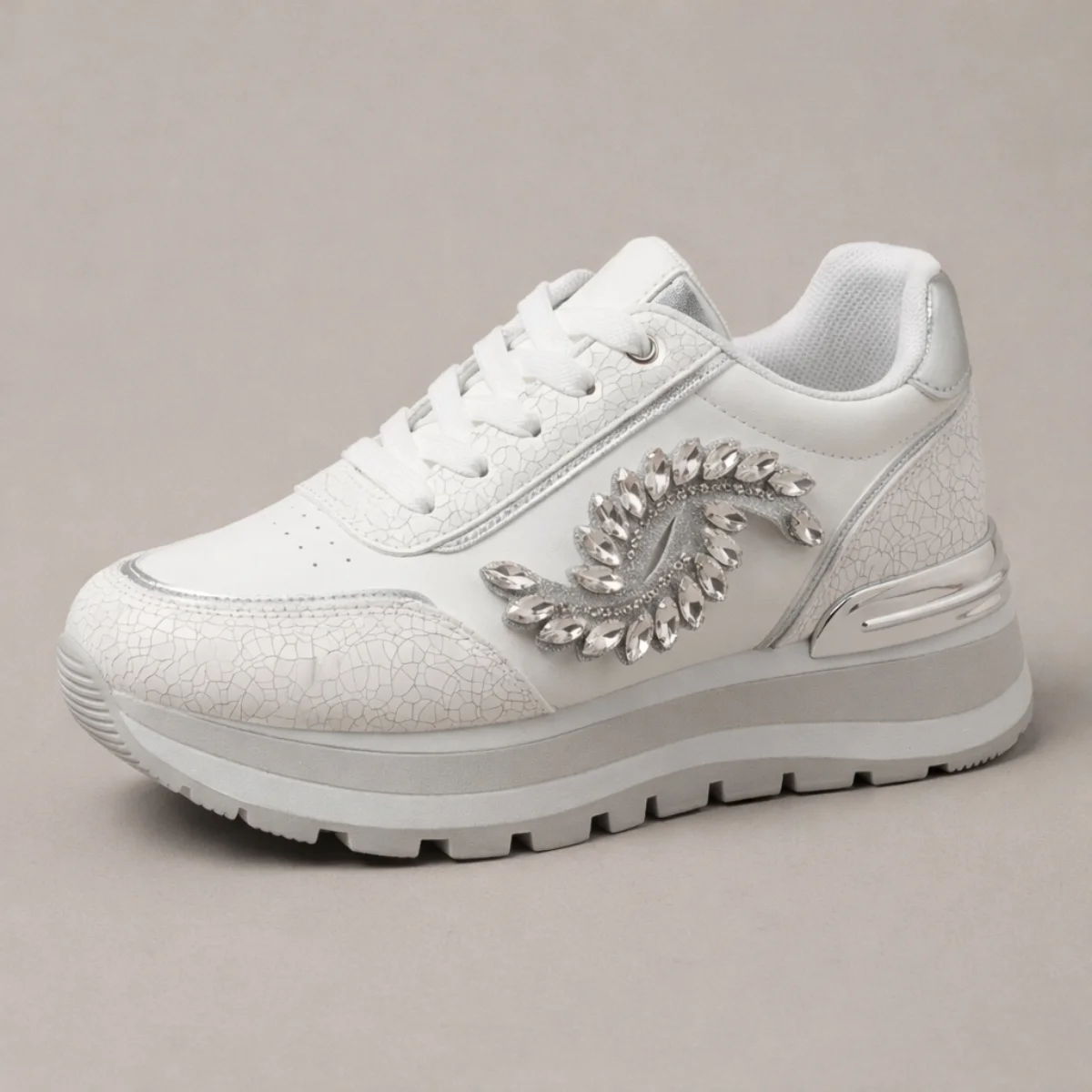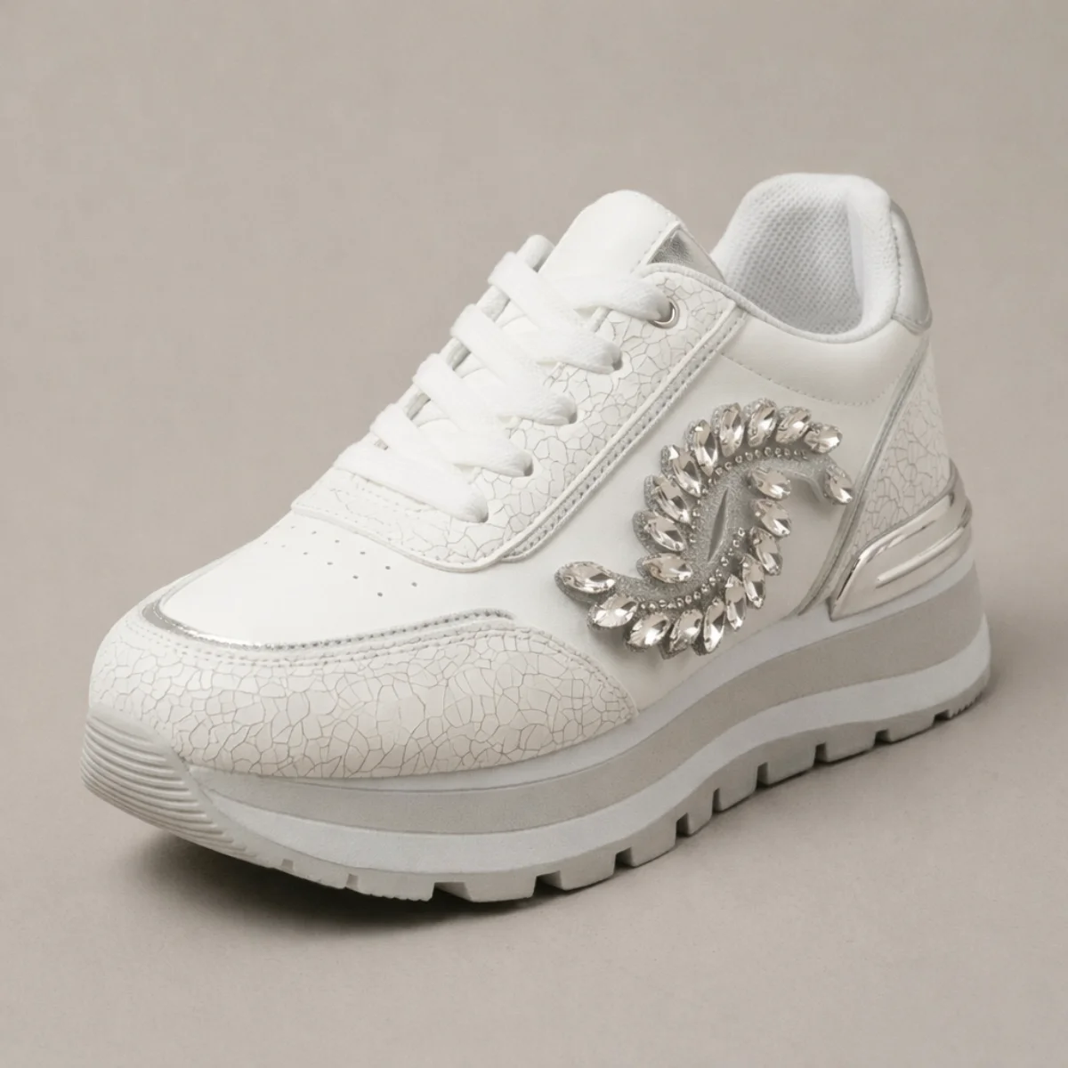 El modelo Via Urban 13549 es la combinación ideal entre la comodidad de un tenis casual y el brillo de la moda actual. Su estructura de material sintético liso y paneles de tela lisa ofrece una base firme y elegante, destacando una aplicación lateral de pedrería fina que aporta un toque de distinción único. Con una suela tipo cupsole blanca que brinda estabilidad y un contraste moderno, este tenis es perfecto para quienes buscan destacar en sus actividades diarias. Es un calzado ligero, de diseño limpio y sin mallas, pensado para complementar outfits urbanos con un aire sofisticado y brillante.